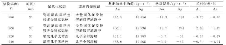 粗鉍是鉍精煉過程中的中間產物,粗鉍中含有鉛、銀、金、砷、銻、碲等[1],準確測定粗鉍中金、銀含量對於指導生產和回收貴金屬具有重要意義。高鉍物料中金、銀測定一般沿用火試金重量法[2-3],主要是控製試料中鉍的含量,減少鉍對火試金的影響,為了減少合粒中鉍的殘留,消除鉍圈對合粒影響,控製樣品中鉍含量為0.50 g為宜[4-6],對於粗鉍來說,稱樣量太小,不能準確測定樣品中金、銀含量。實驗證明可以先把鉍焙燒氧化,然後用乙酸除去鉍氧化物中的鉍[7-8],再用火試金重量法測定物料中金、銀含量[5]。本方法精密度高,準確度好,可用於粗鉍中金、銀含量的測定。