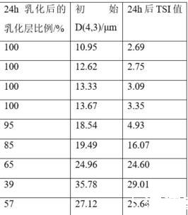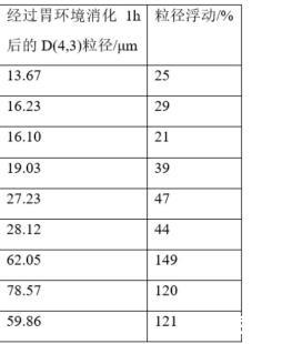 根據表1-3的數據可知,采用本方法製備的玉米內源組分乳液具有粒徑小、穩定性好、乳化能力強、降低油水界麵張力等優點,能夠在胃液消化階段抵抗胃環境脅迫,實現對功能組分的保護。進一步地,當玉米穀蛋白酶解產物的水解度在優選的1-4%範圍內,乳液具有更高的穩定性。