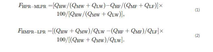 式中,FHPR-MLPR為高滲層相對中低滲層剖麵改善率;FHMPR-LPR為高中滲層相對低滲層剖麵改善率;QHW、QMW、QLW分別為高、中、低滲層注水壓力平穩時分流率;QHF、QMF、QLF分別為高、中、低滲層注三相泡沫體係後注水壓力平穩時分流率。