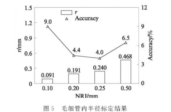 (1)毛細管內半徑標定值略小於其生產標號,前者比後者小4.0%——9.0%;對於生產標號為0.10mm和0.20mm的毛細管差分組合,內半徑標定後表麵張力測試精度提升10.9%——20.7%.