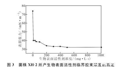 圖3菌株XH-2所產生物表麵活性劑臨界膠束濃度的測定